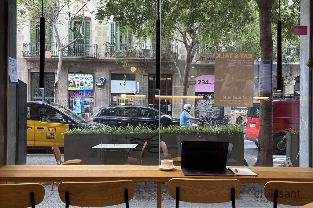 Just grab a high seat at the communal high chair bar where you can plug in and get in the zone.