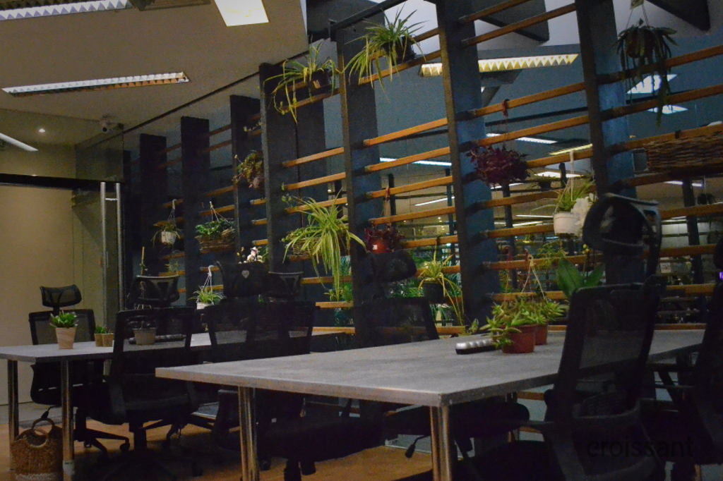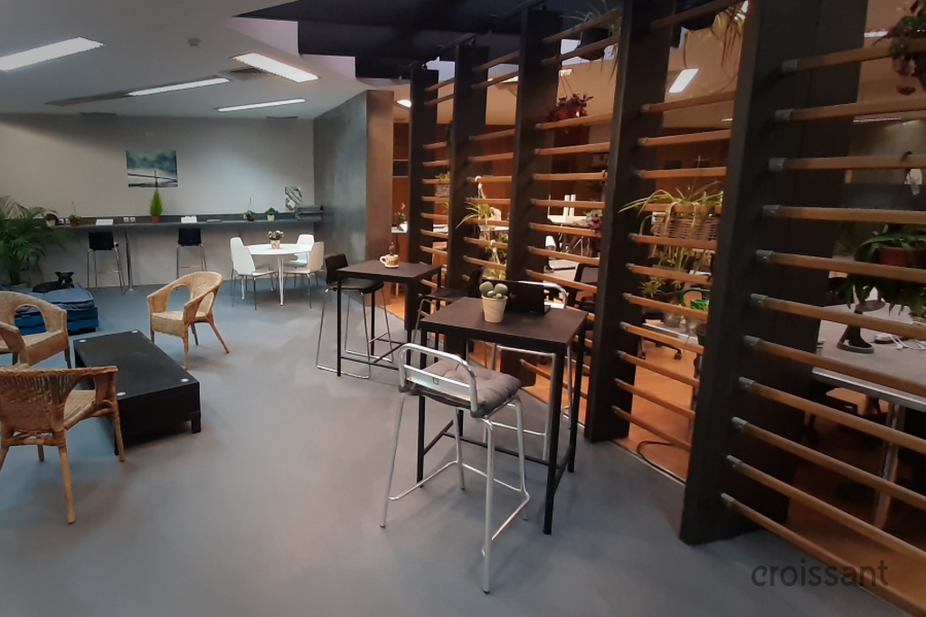 Common area and hot desks (high desks).